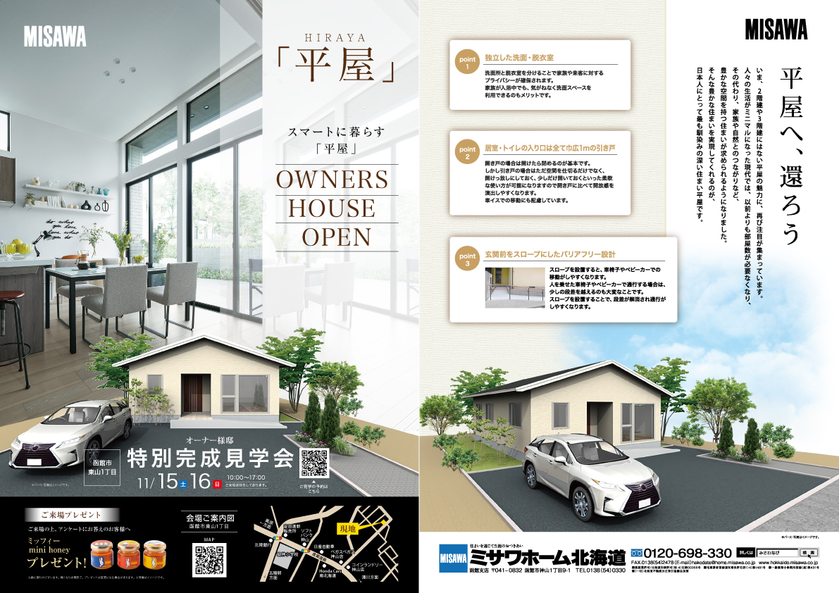 11/15(土)16(日)の2日間。オーナー様宅完成見学会を開催します。